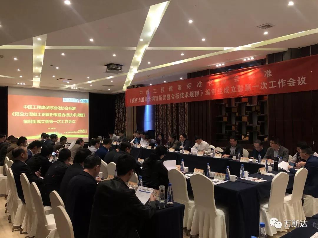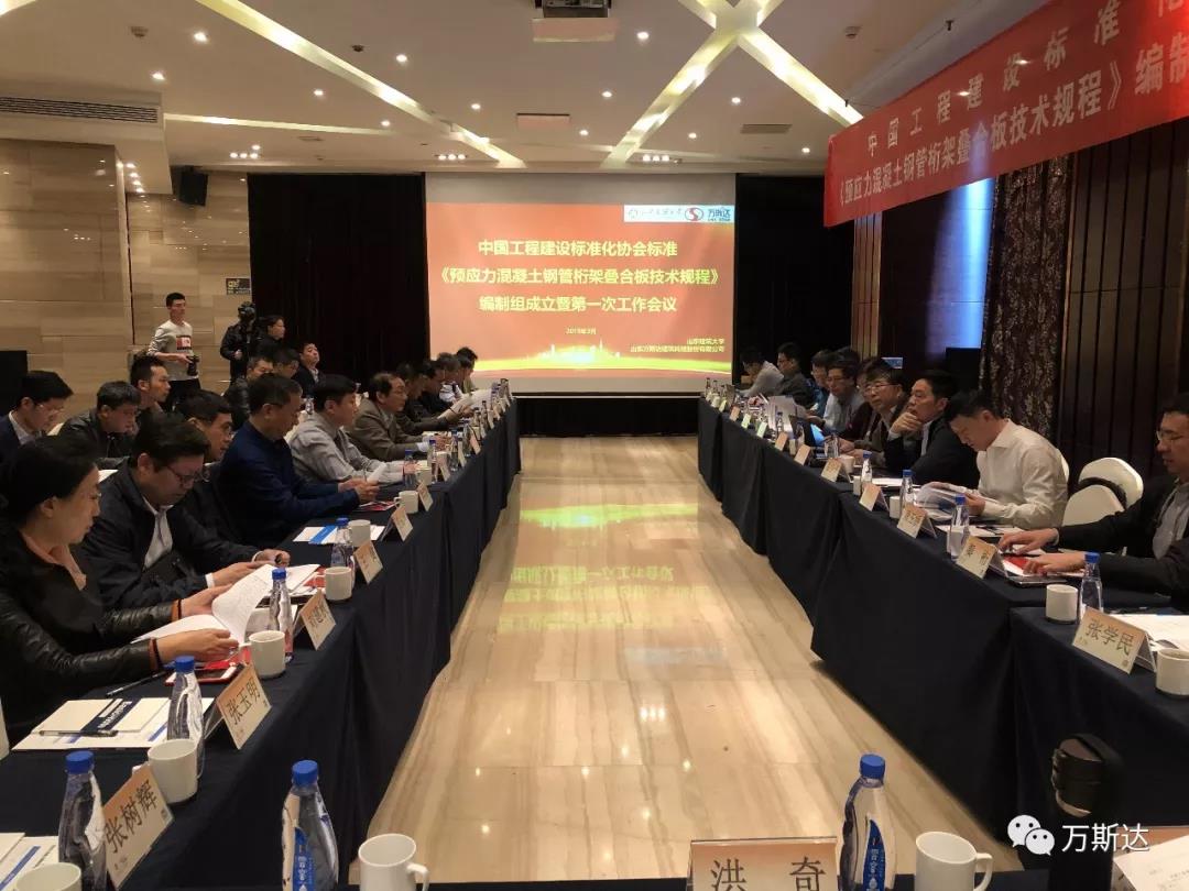 2019年3月19日,中國(guó)工程建設(shè)標(biāo)準(zhǔn)化協(xié)會(huì)標(biāo)準(zhǔn)《預(yù)應(yīng)力混凝土鋼管桁架疊合板技術(shù)規(guī)程》編制組成立暨第一次工作會(huì)議在濟(jì)南召開(kāi)。會(huì)議由中國(guó)工程建設(shè)標(biāo)準(zhǔn)化協(xié)會(huì)建筑與市政工程產(chǎn)品應(yīng)用分會(huì)秘書(shū)長(zhǎng)顧泰昌主持,山東省住房和城鄉(xiāng)建設(shè)廳節(jié)能科技處處長(zhǎng)殷濤出席了本次會(huì)議,主編單位山東建筑大學(xué)教授張?chǎng)?、山東萬(wàn)斯達(dá)建筑科技股份有限公司董事長(zhǎng)張波、總經(jīng)理張樹(shù)輝參會(huì)。