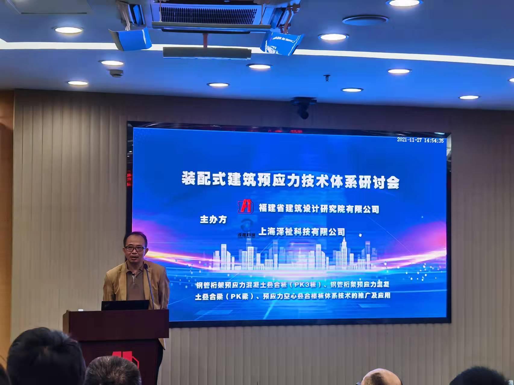 2021年11月27日,由福建省建筑設計研究院有限公司和上海澤祉科技有限公司主辦的“裝配式建筑預應力技術體系研討會”在福建省建筑設計研究院有限公司召開,會議主要對鋼管桁架預應力混凝土疊合板(PK3型板)、鋼管桁架預應力混凝土疊合梁(PK梁)及PK預應力樓蓋體系等技術進行研討,特邀上海澤祉科技有限公司合作單位山東萬斯達董事長張波、總經理張樹輝參加,與福建當?shù)氐?0多位設計單位代表以及各位與會領導專家進行了廣泛、深入、熱烈的技術交流與研討。